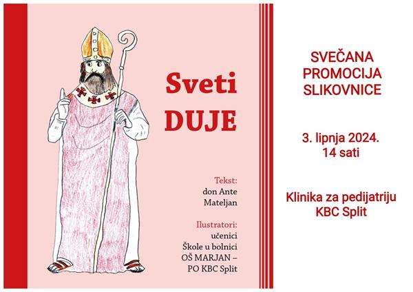 Svečana promocija slikovnice 'Sveti Duje' održat će se na Klinici za pedijatriju KBC-a Split u ponedjeljak, 3. lipnja 2024. u 14 sati.