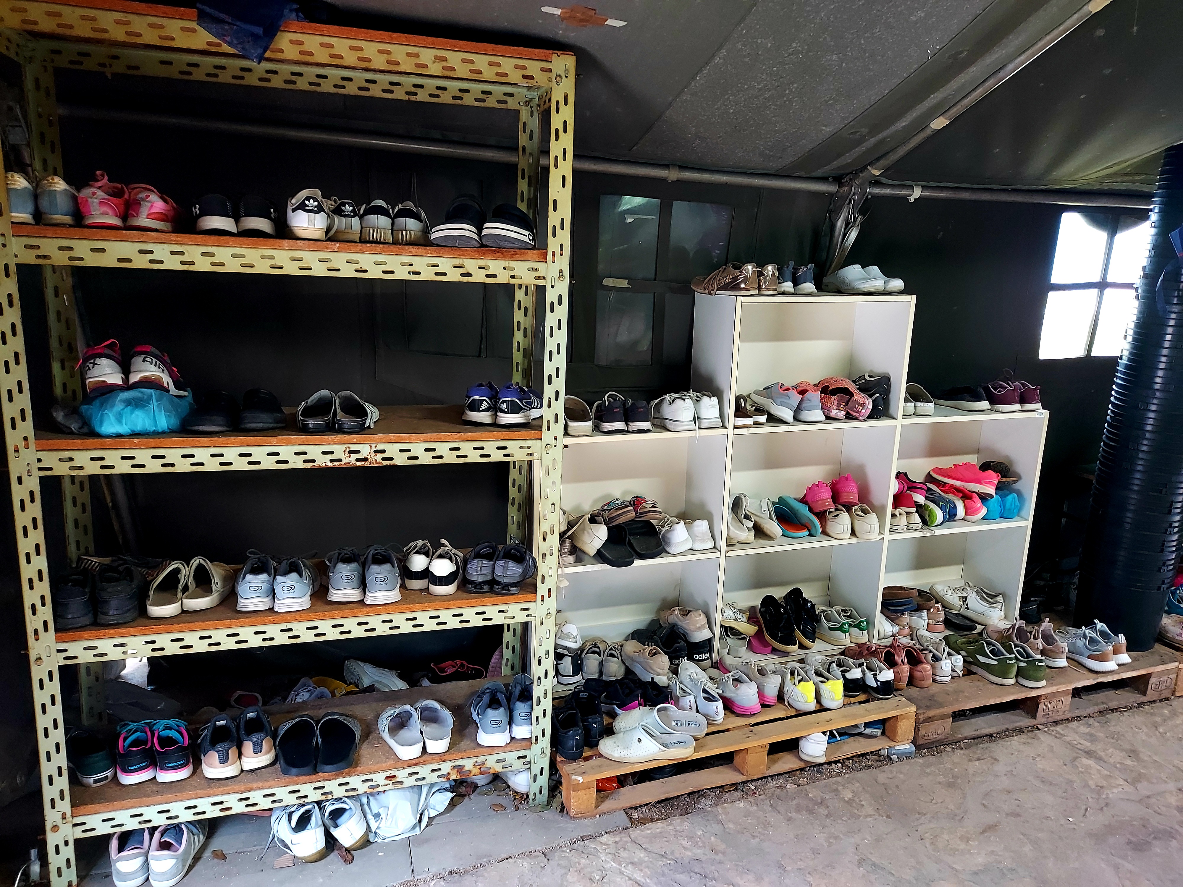 Obuća djelatnika koji su u tom trenutku unutar odjela nalazi se u šatoru pred ulazom.