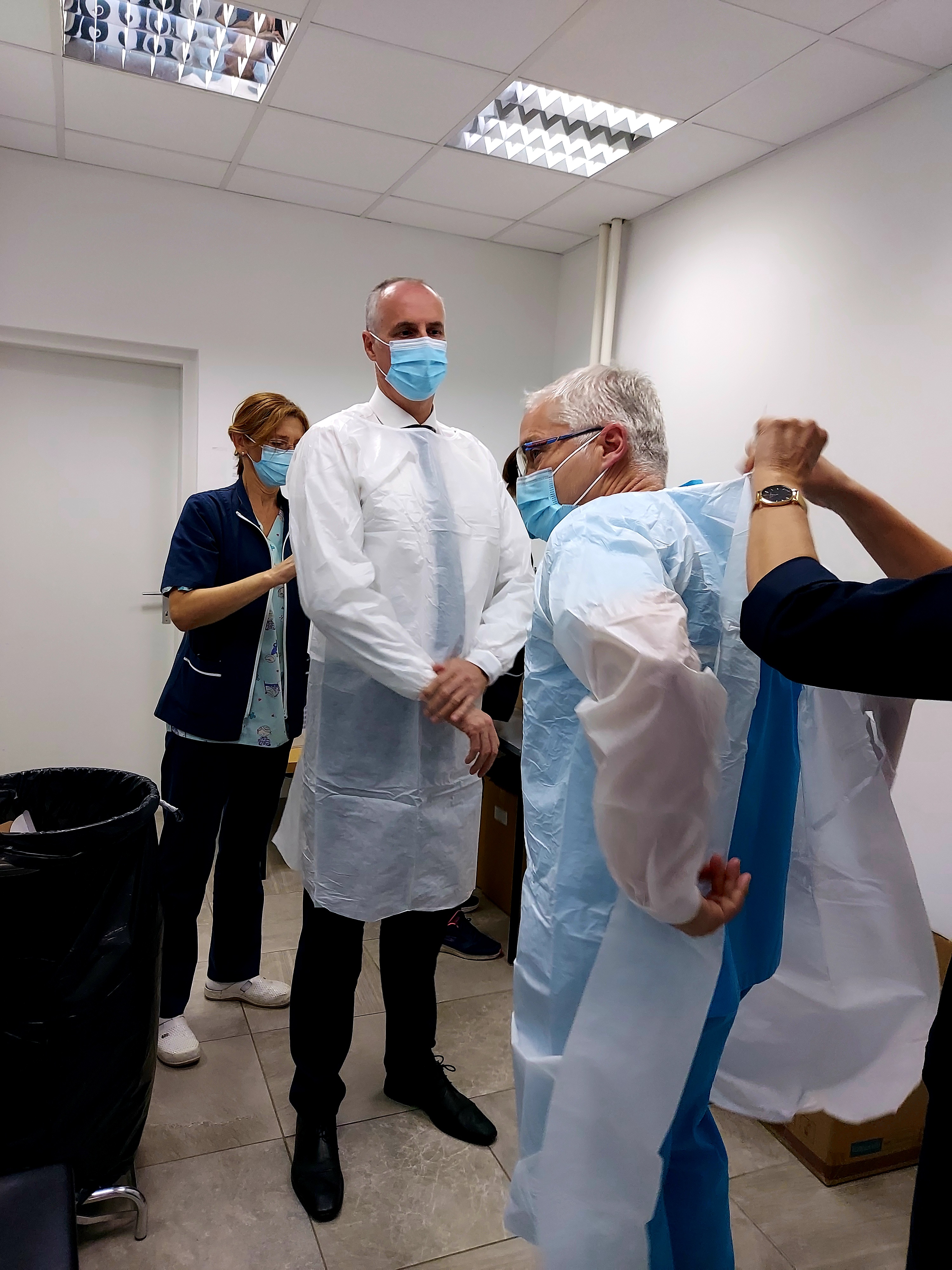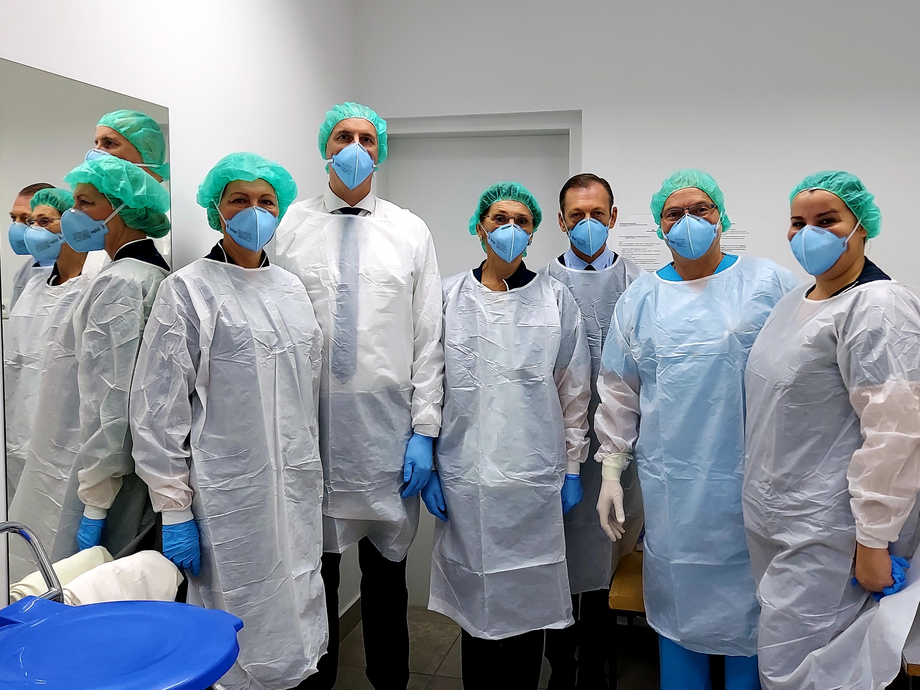 Gradonačelnik prof. dr. sc. Ivica Puljak u pratnji liječnika i medicinskih sestara posjetio je osoblje Odjela za intenzivno liječenje COVID-19 pacijenata Respiratorno-intenzivističkog centra na Križinama.