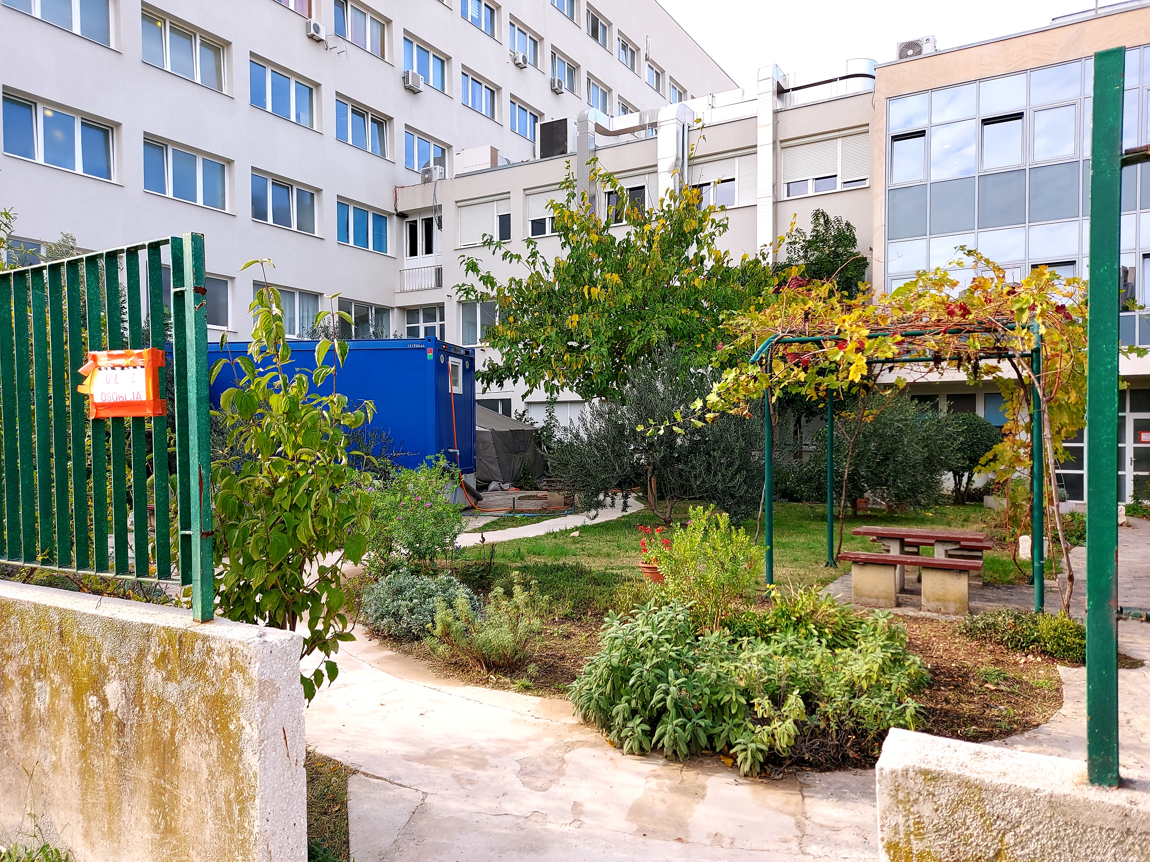 Kad uspiju uhvatiti kratak predah, za lijepog vremena djelatnici mogu sjesti na zrak, u vrt kojeg uređuju bolničke pomoćnice koje su, uz liječnike i liječnice, medicinske sestre i tehničare, vrijedno osoblje bez kojeg COVID-19 odjeli ne bi mogli funkcionirati.